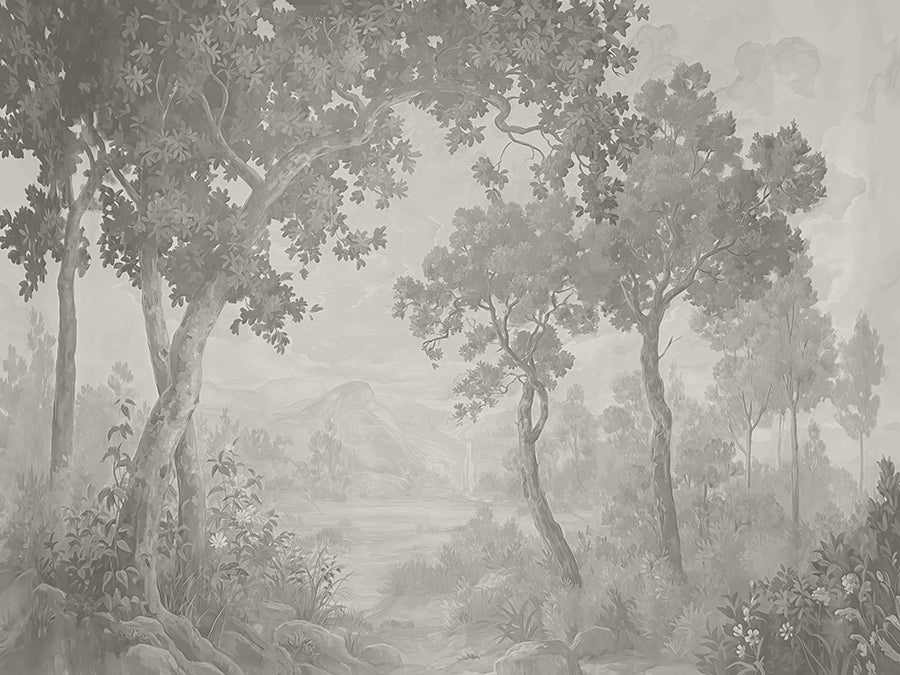 The "Douce Provence" wallpaper is an original work by painter Carol Moreno that transports your gaze to a lush forest with majestic mountains in the background, recalling Europe and capturing the timeless beauty of Provence. Every detail evokes a serene, enchanting ambience, inviting contemplation. Transforming your space into a sanctuary of natural beauty, this wallpaper invites you to relax and recharge your batteries.